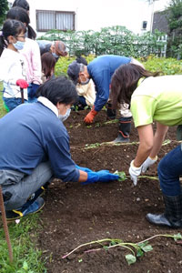 町会の畑のお世話を日頃してくださる方のご協力もあり、丹精込めて耕した畑の土は柔らかく、 苗を植えるために土に触れれば、あたたかく心地よい感触と共に、癒しのひとときが流れていきます。 人との接触が制限されるなか新役員一同、今年度の子供会のあり方を模索していましたが、 町会の畑のお世話をしてくださる方々との交流、新役員の顔を合わせてのひとときとなり、 貴重な時間を共有することができました。