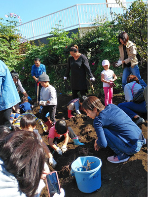 今年は台風や天候の影響で心配されたさつま芋も 町会の畑をお世話してくださる方々のお陰で沢山穫れました。 丸いのや小さいの、大きいお芋に加え、土の中には色んな虫が! 土を掘りながら自然の勉強会にもなりました。 小学生はチームに別れ対抗戦ゲームやビンゴ大会で楽しみました。