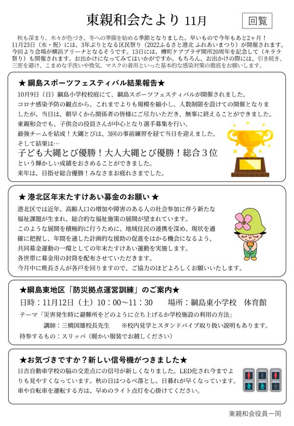 町会の班数 : 11区長(1年交代)、30班(半年交代)